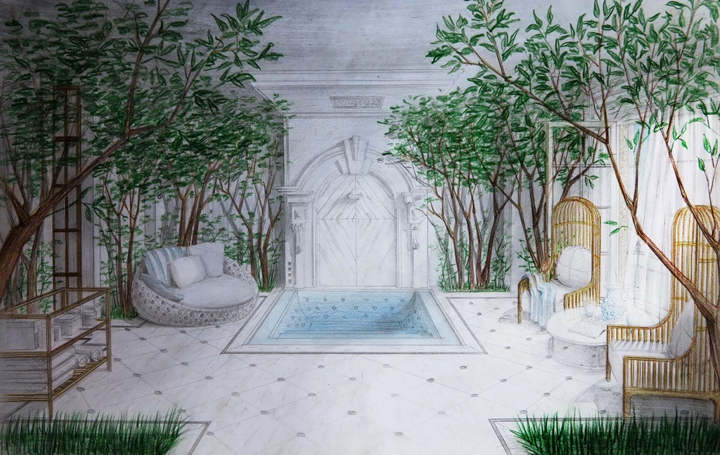 *бассейн-джакузи встроенный в пол (уровень пола в зоне зимнего сада)
